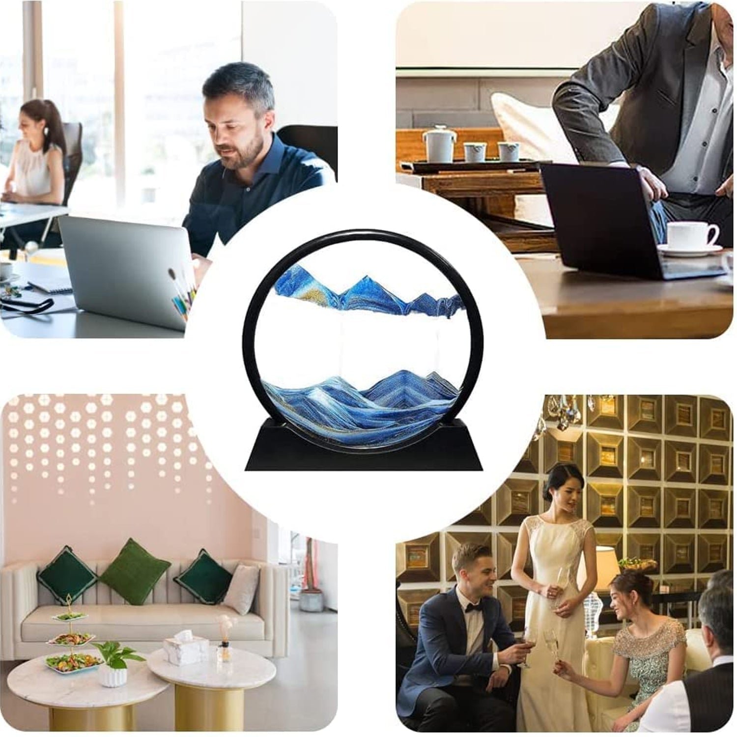 3D Moving Sand Art Picture | Liquid Motion Decor | Relaxing Sandscape for Home & Office | Round Glass Frame (1 Pc)