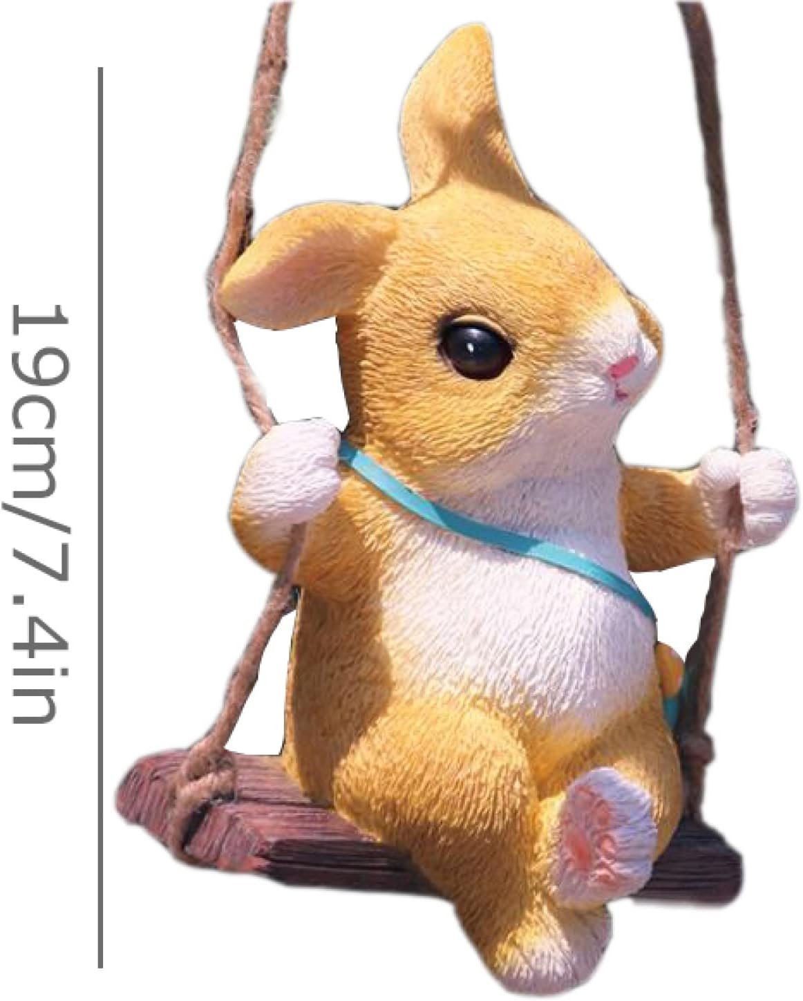 Adorable Bunny Rabbit on a Swing Statue – Whimsical Hanging Garden Figurine – Resin Indoor/Outdoor Tree or Patio Decor