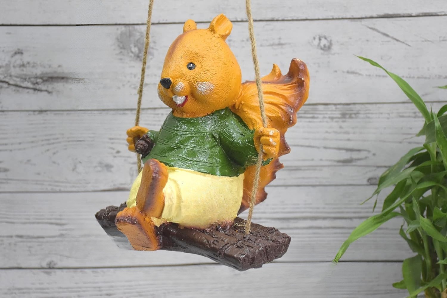 Cute Squirrel Garden Statue on Swing | Hanging Resin Animal Figurine for Patio, Tree, Yard, Balcony Decor | Outdoor & Indoor