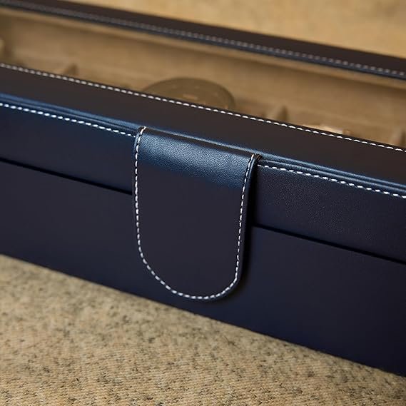 Presents Luxury 6-Slot Watch Box for Men & Women ? Lockable Leather Watch Organizer with Glass Lid, Soft Velvet Cushions, Premium Display & Storage Case for Watches (Blue)